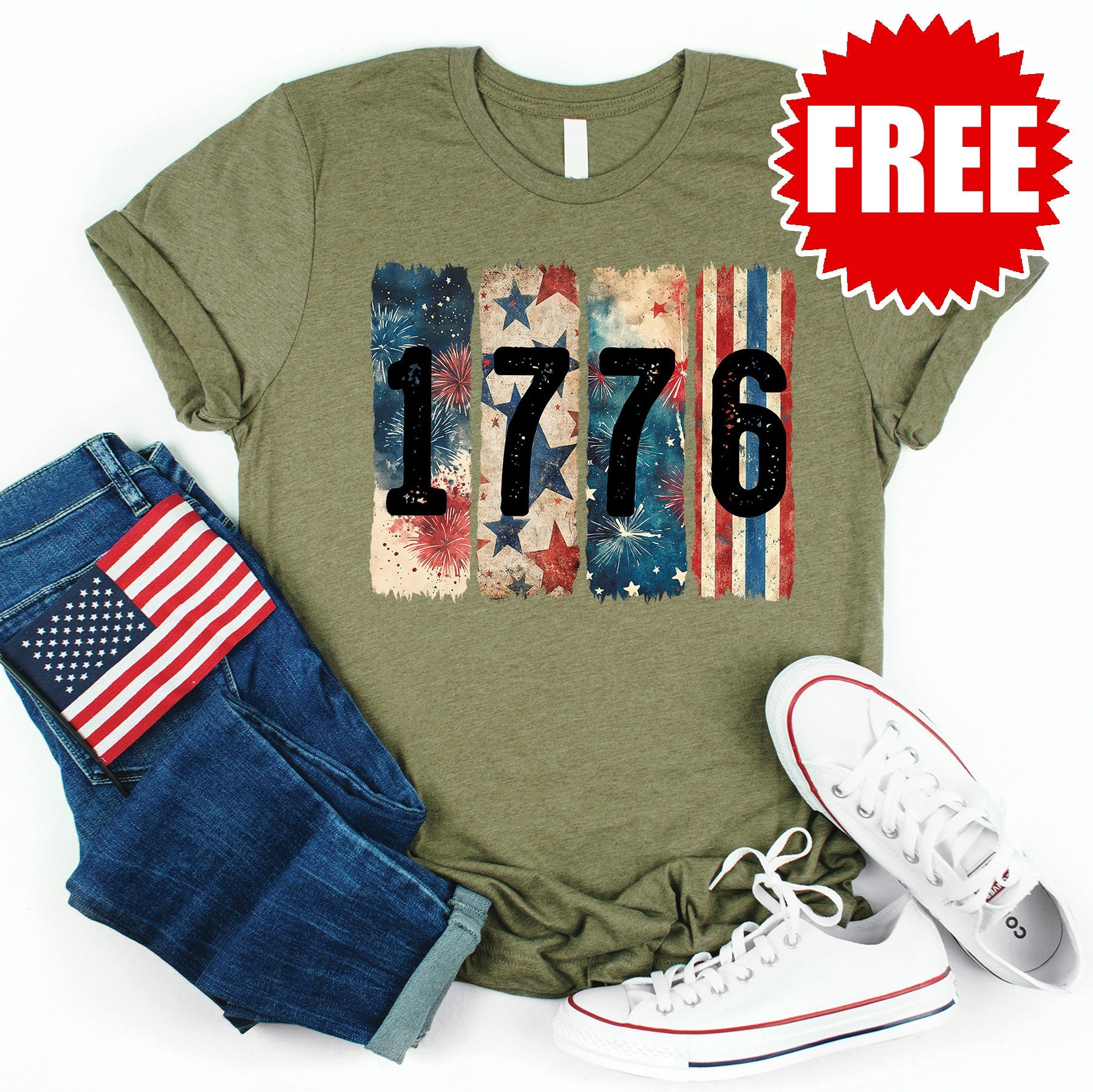 1776 Tee - Heather Olive - FREE