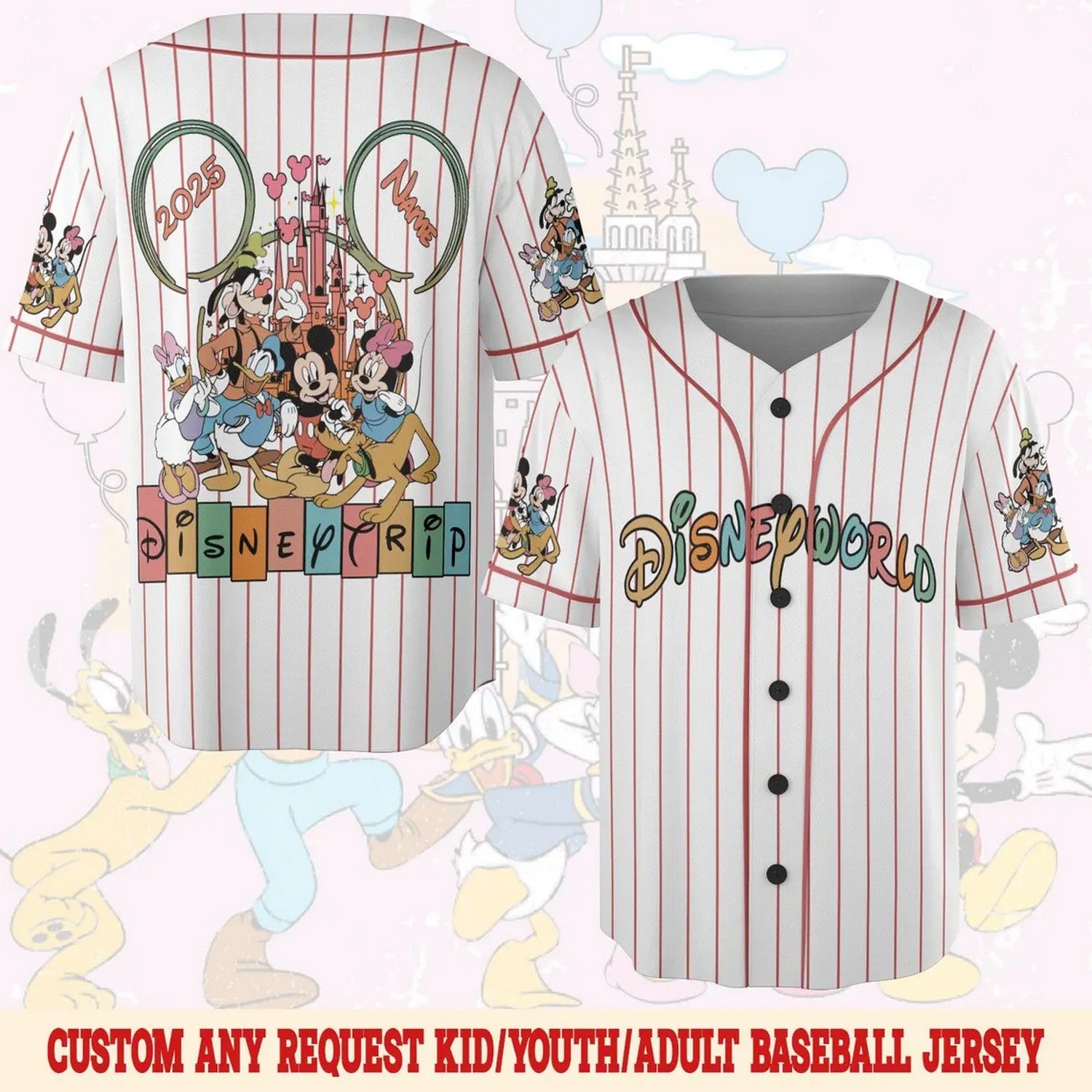 Custom Name Disneyworld Characters Baseball Jersey